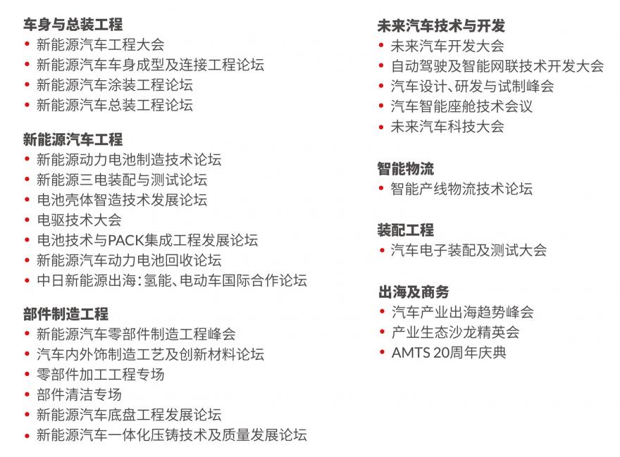 展会期间还将举办丰富多彩的同期活动,包括同期论坛、CEO访谈、新品发布、展商活动、商务晚宴等,40+技术论坛、600+演讲嘉宾以及6000+位听众,旨在汇聚全球汽车工程领域专家学者,搭建一个一站式商务交流平台。会议将精准聚焦车身与总装工程、新能源汽车工程、部件制造工程、未来汽车技术与开发、智能物流等前沿主题,力求完整覆盖汽车技术研发与工程制造上下游产业链。