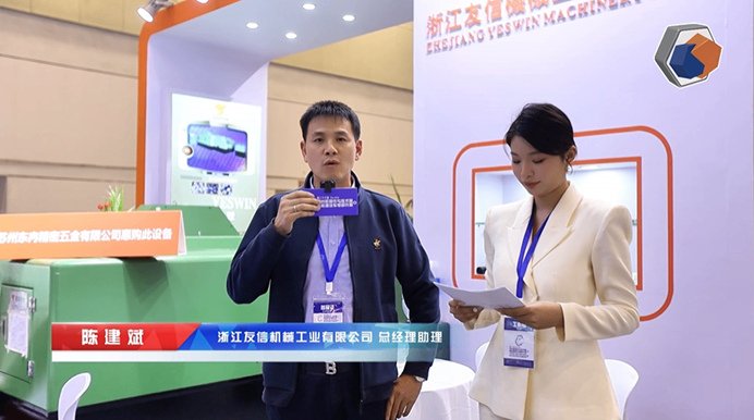 “我们公司每年都参加苏州紧固件展。苏州这座城市的地理优势比较明显,位于江浙沪中心这样一个核心位置,在金鸡湖畔旁边,很多客户过来比较方便,所以我们每次都会提设备过来在这里展览。这次我们展示了明星产品14B七工位加长设备,主要应用于新能源汽车上的汽车零部件制造,感谢现场国内外客户的信赖与认可!”