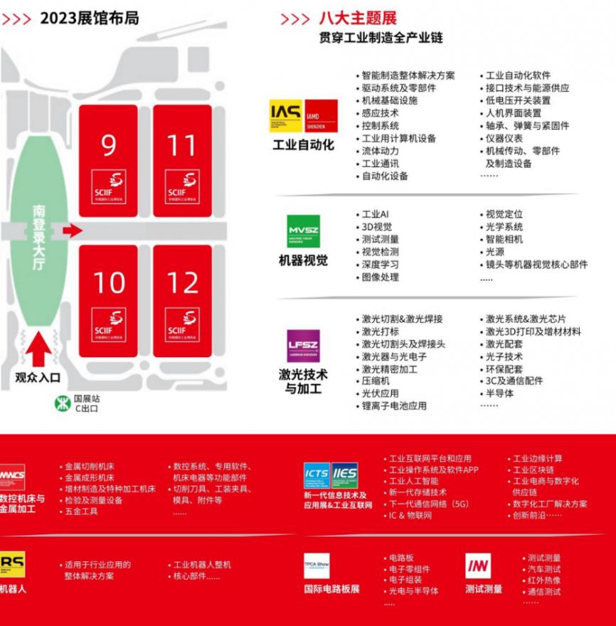 华南国际工业博览会涵盖:工业自动化展、机器视觉展、激光技术展、数控机床与金属加工展、机器人展、新一代信息技术与应用展、工业互联网体验展、国际电路板展- 深圳八大主题展,从原材料到生产设备到信息技术再到集成制造,打通智能制造上下游产业链,是一场全且深,专且精的工业盛会,届时将带来最新产品、技术和解决方案。