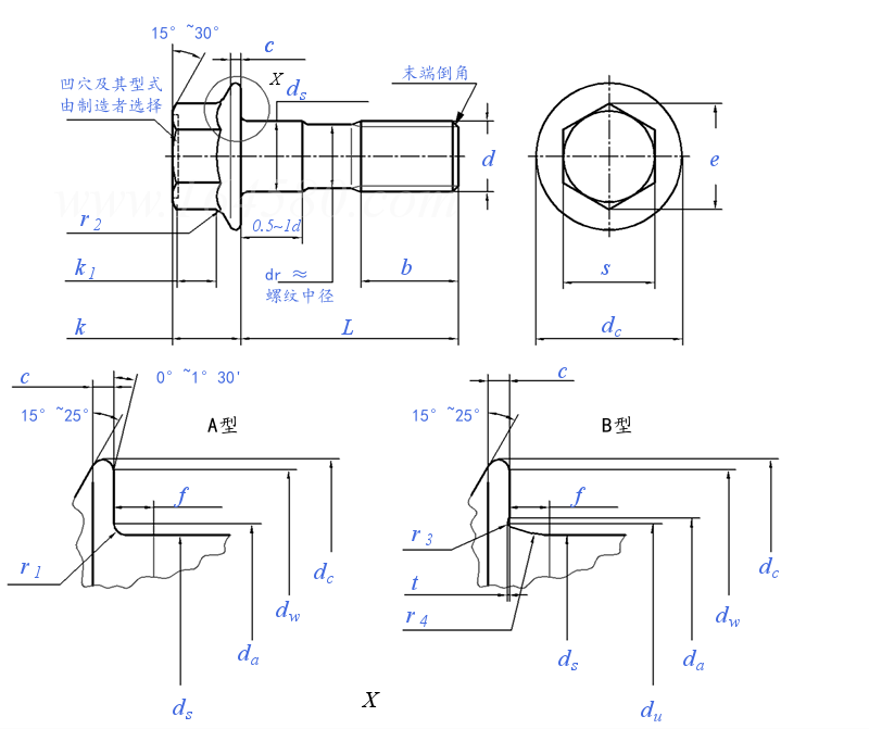 EN 1665 R - 1997 重型六角法兰螺栓 R型