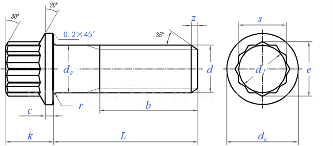 ASME B 18.2.5M - 2013 十二角法兰螺栓 (12.9 / ASTM F468M)