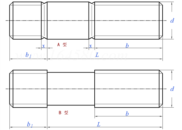JB /ZQ 4324 - 2006 B级 M56~M100 双头螺柱 b1=1d