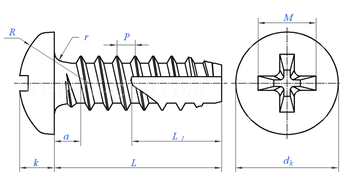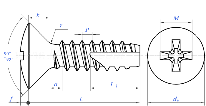 DIN 7516 DE - 2016 十字槽沉头自攻自切螺钉 - DE型