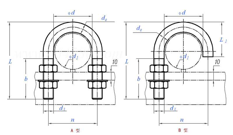 DIN 3570 - 1968 U型螺栓—用于标称直径20至500管 弓形夹
