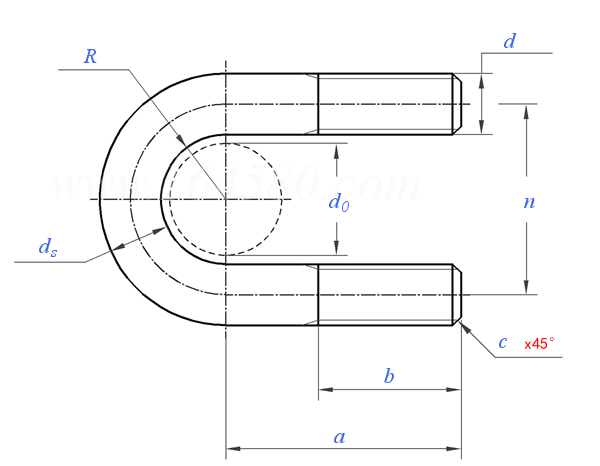 ASME B 18.31.5 UR - 2011 U型螺栓 圆角 (F468, F593, F1554, A307, A193/A193M, A320/A320, SAE J429)