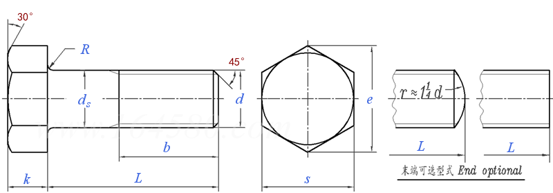 DIN 931-1 - 1987 六角头粗杆半牙螺栓M1.6-M39