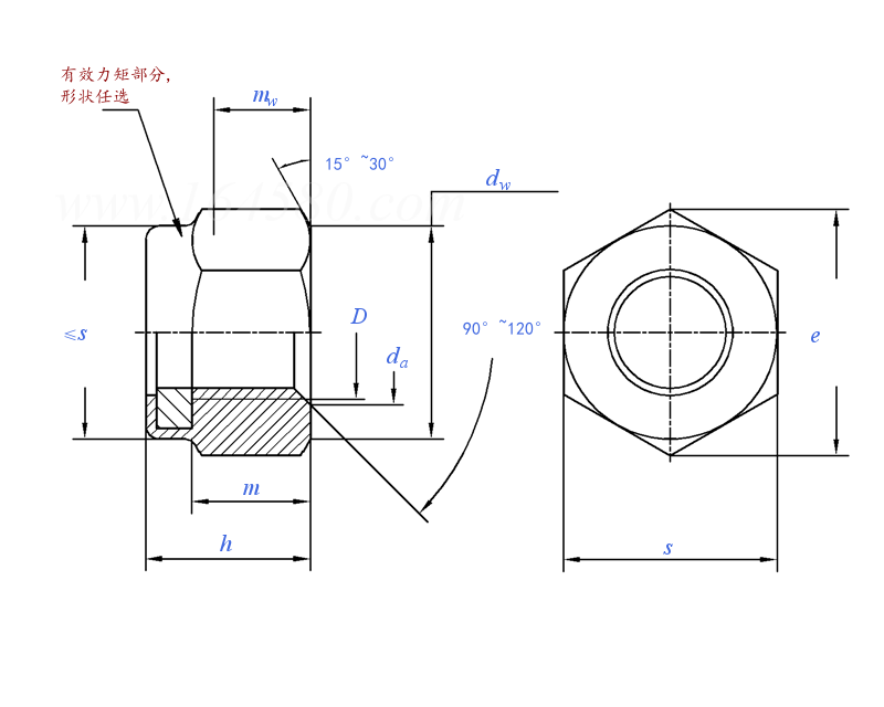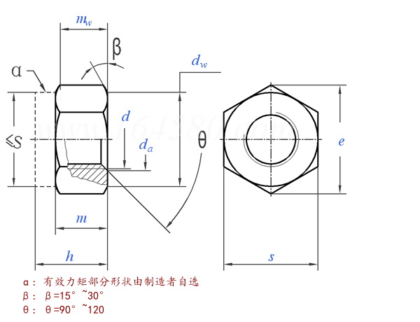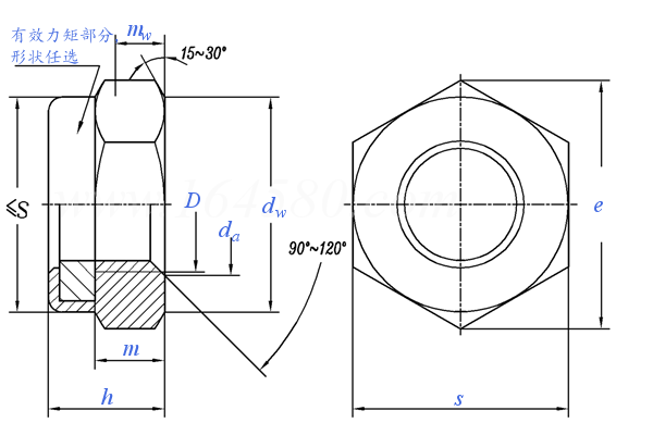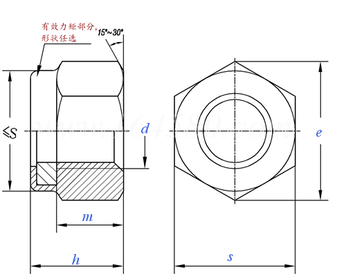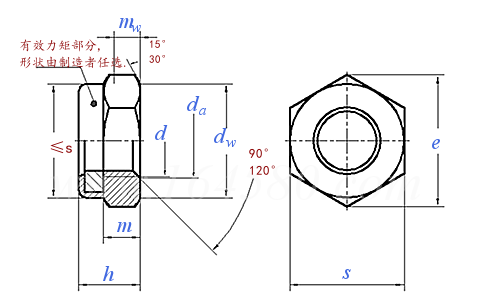 DIN 6924 - 1987 非金属嵌件锁紧厚六角螺母