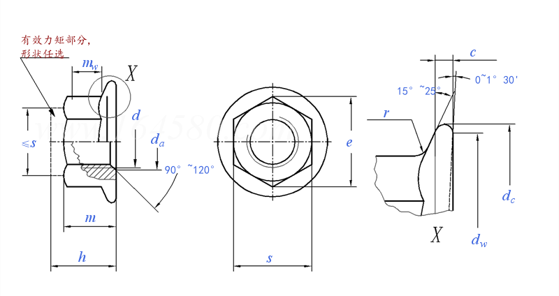 DIN EN 1667 - 1998 有效力矩型全金属六角法兰螺母,米制,细牙螺纹