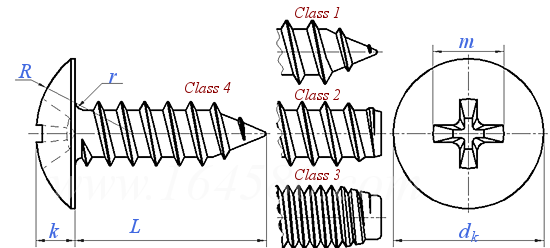 JIS B 1122 AAT4 - 1996 十字槽大扁头自攻钉 - 螺纹型式:Class 1~Class 4 [附表4]
