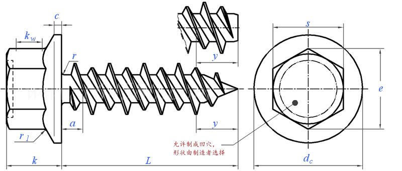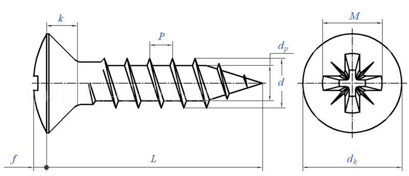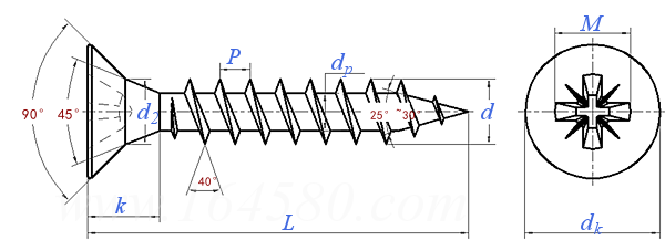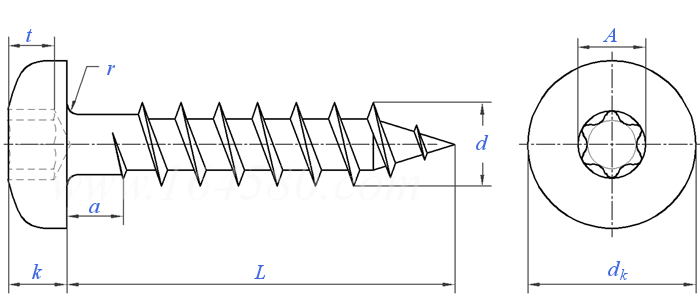 DIN 7505 A - 1986 米字槽沉头塑料牙螺钉(纤维板钉)- A型