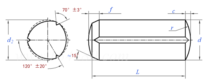 DIN 1473 - 1978 带倒角及全长平行沟槽的槽销