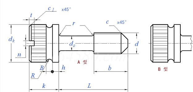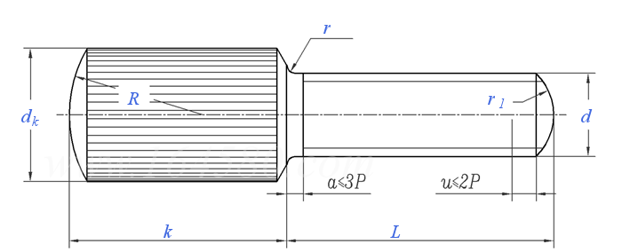 DIN 7964 F - 1990 粗牙不脱出螺栓和螺钉 - 滚花高头台阶螺钉