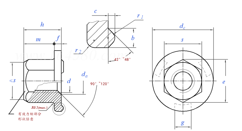 DIN 977 - 1998 六角法兰面焊接螺母